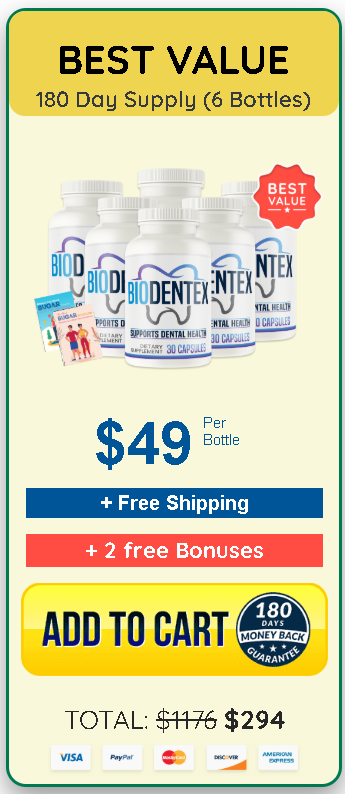 Biodentex is backed by a 180-day money-back guarantee, allowing customers to try the product with confidence and minimal risk. This refund policy reflects the manufacturer's commitment to transparency and customer satisfaction.